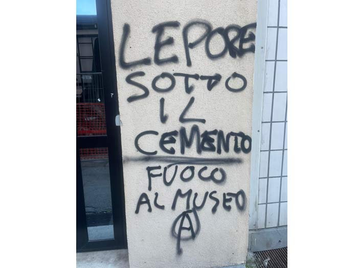 (DIRE) – “Lepore sotto il cemento, fuoco al museo” e altre scritte di questo tenore sono state tracciate nella notte per imbrattare la sede del Pd in via San Donato. Gli autori, che hanno firmato con la sigla anarchica, fanno esplicito riferimento al progetto del Museo dei bambini in costruzione al Pilastro, che “vi guarda con odio”, come recita un’altra scritta.
