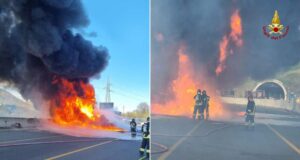 Sasso Marconi: incendio di un autoarticolato in autostrada A1